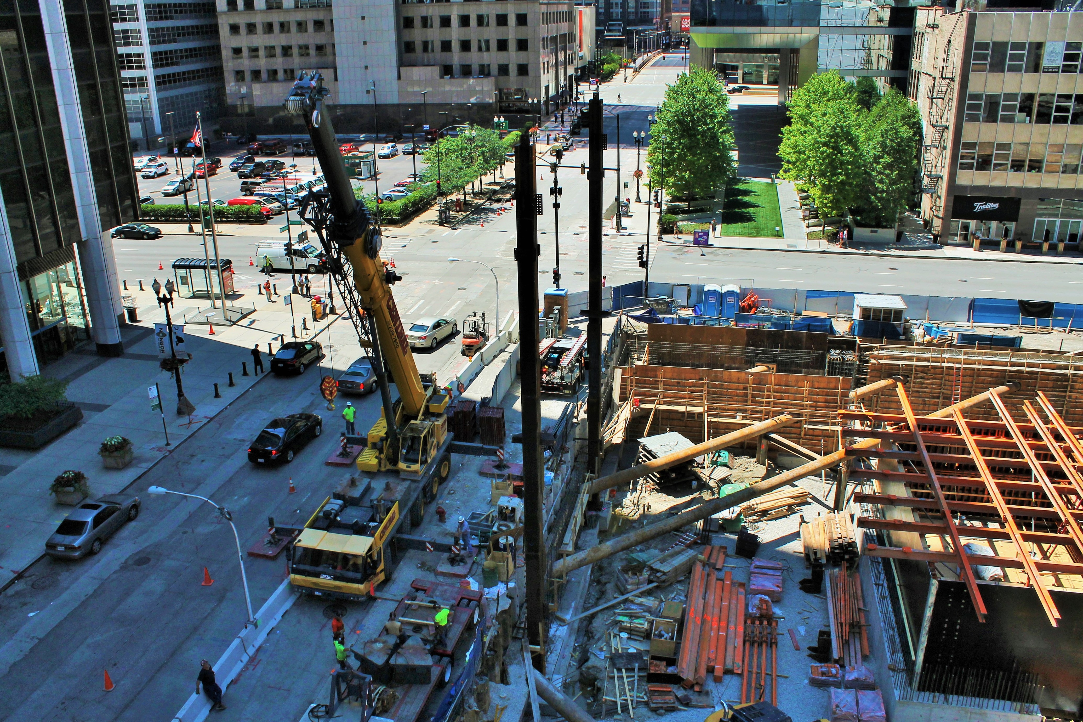 151 North Franklin 2 Published July 19, 2016 at 4142 × 2760 in Tower Crane Update: There Won’t Be One at 151 North Franklin This was Saturday, as Lendlease erected these two beams.
