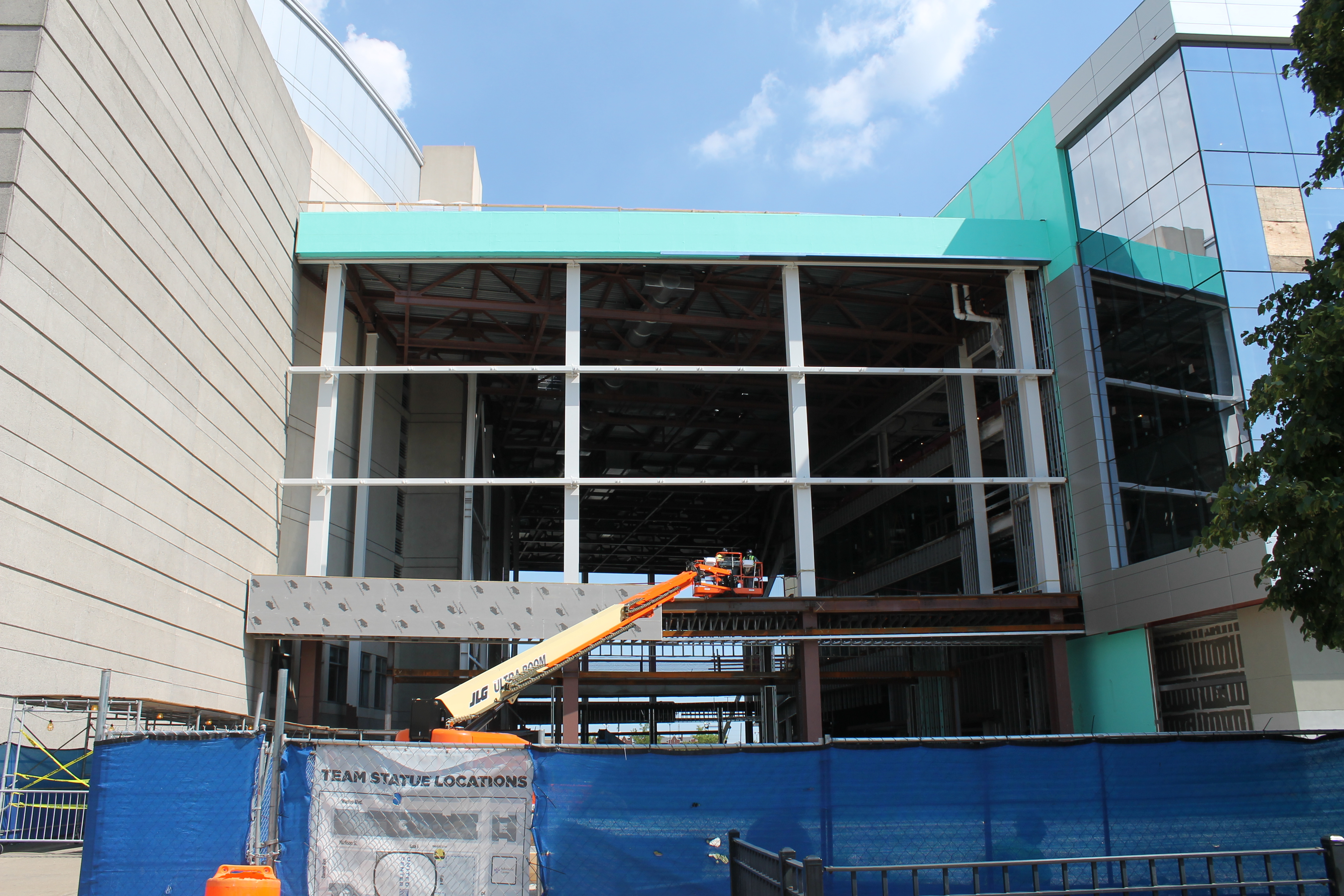 United Center office 6 Published July 31, 2016 at 4272 × 2848 in Construction Update: The United Center signs an extension South side, where the atrium will connect old to new.