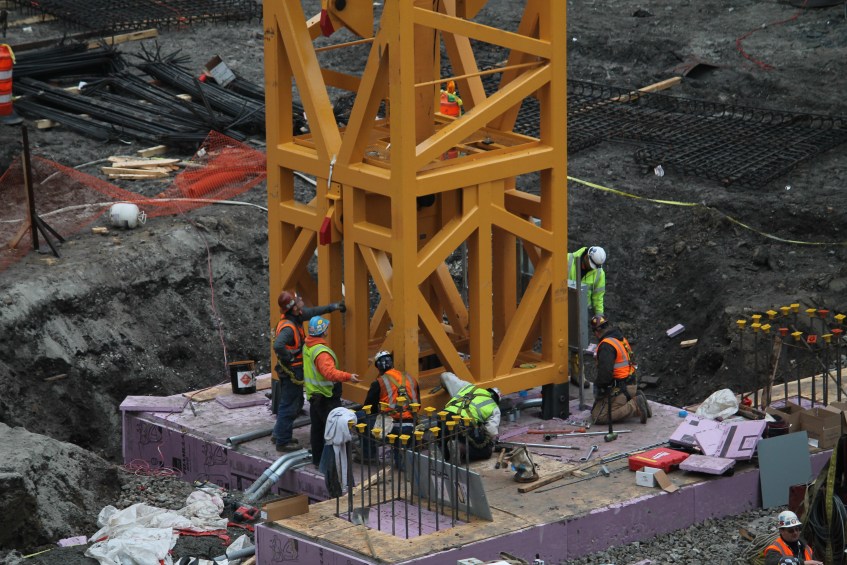 Vista Tower cranes 2 Published January 3, 2017 at 4272 × 2848 in First of two Vista Tower cranes is in the ground Crews secure West Crane into position atop its foundation.