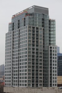 Once famous for its glow-in-the-dark tower crane, The Hudson, at 750 North Hudson Avenue in River North, is topped out, glassed up, and looking like it will easily meet its Summer 2017 opening. Pappageorge Haymes Partners designed The Hudson for Onni Group, which is not only the developer, but the general contractor as well. That summer opening will feature 240 apartments, 240 parking spaces, and 10,000 square feet of ground-floor retail.