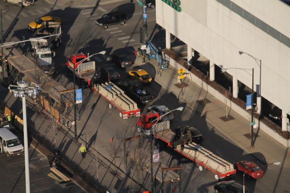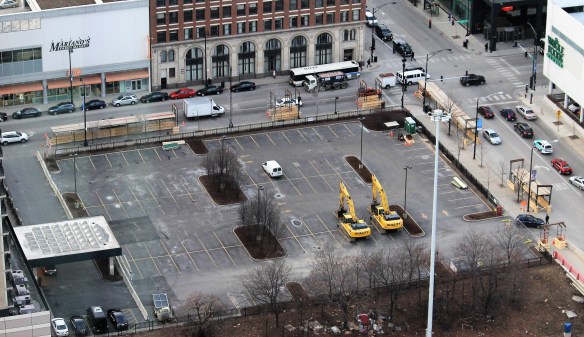 The former Crowne Plaza parking lot has been a flurry of activity all week. Yep, One South Halsted is ready to roll into the West Loop.