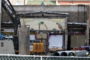 The view of the saved facade from inside Clarkview as Stalworth begins caisson work.