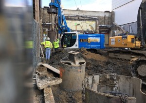 There is no room for error — heck, there’s no room for much of anything — in the tiny space at 3226 North Clark Street in Lake View, where Stalworth Underground has squeezed caisson equipment through the alley to begin work on a new Transit Oriented Development.