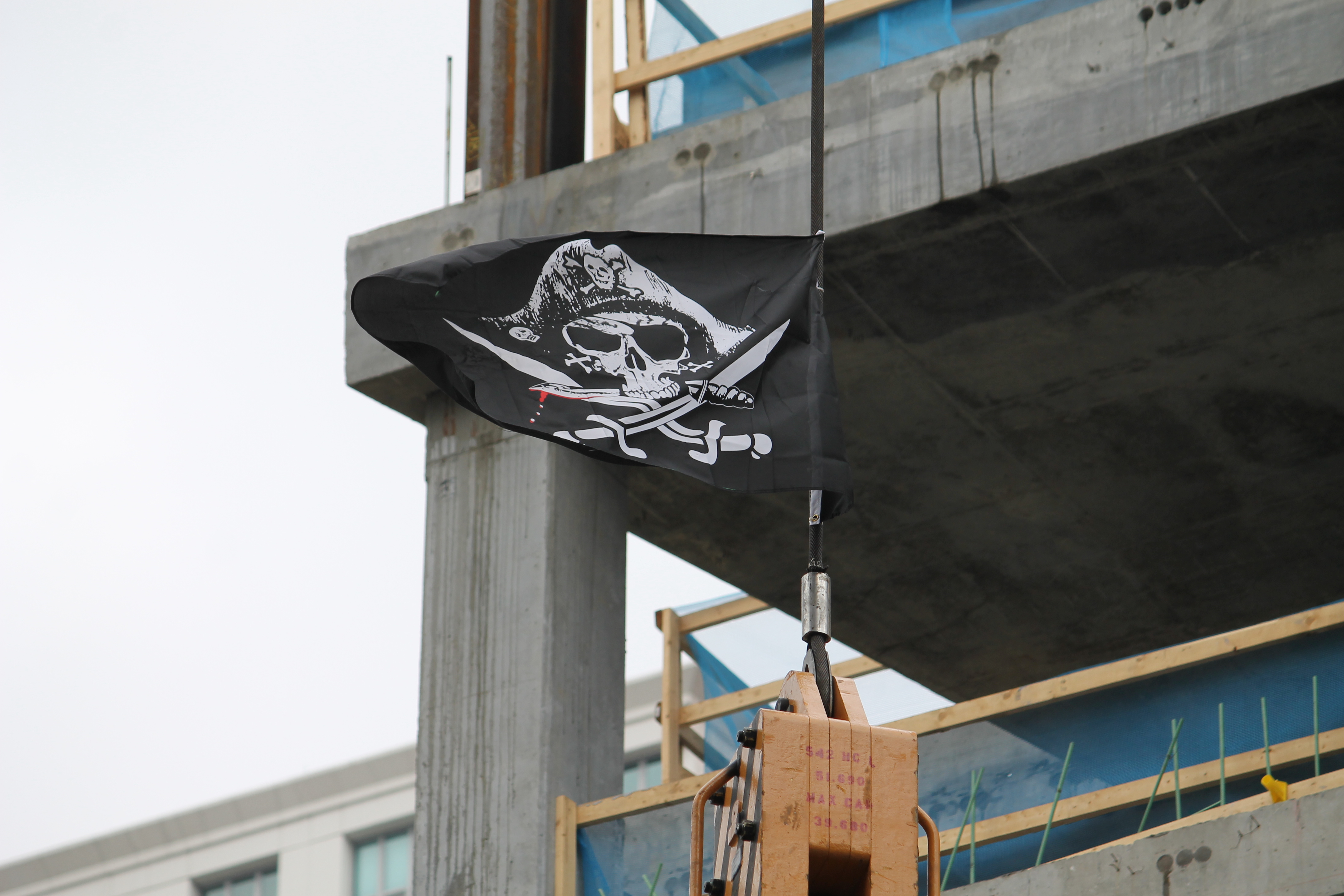 625 West Adams steel 6 Published February 21, 2017 at 4272 × 2848 in 625 West Adams transitions from concrete to steel Arrrrr, that’s a Pirate flag, not a Steeler flag…
