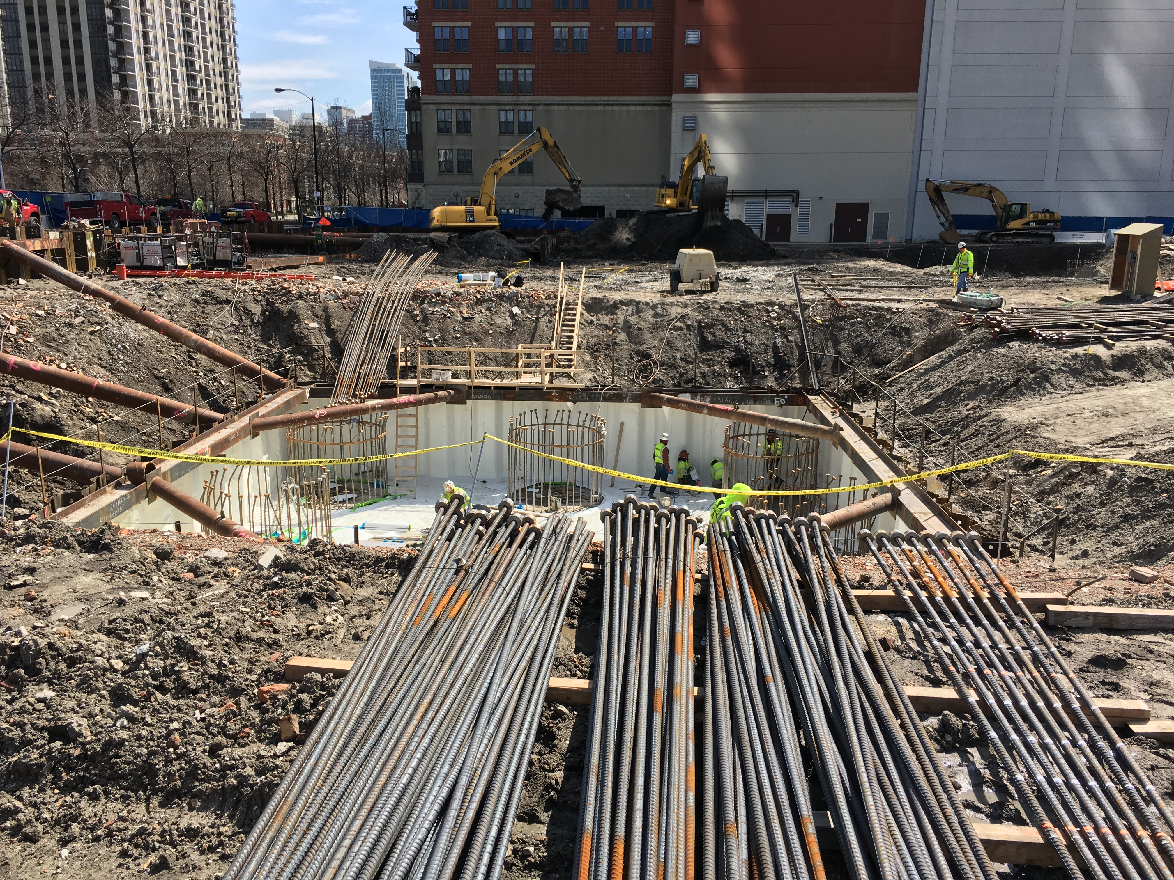 One Grant Park 15 Published April 6, 2017 at 4032 × 3024 in One Grant Park Update: Readying for a tower crane, working below the street
