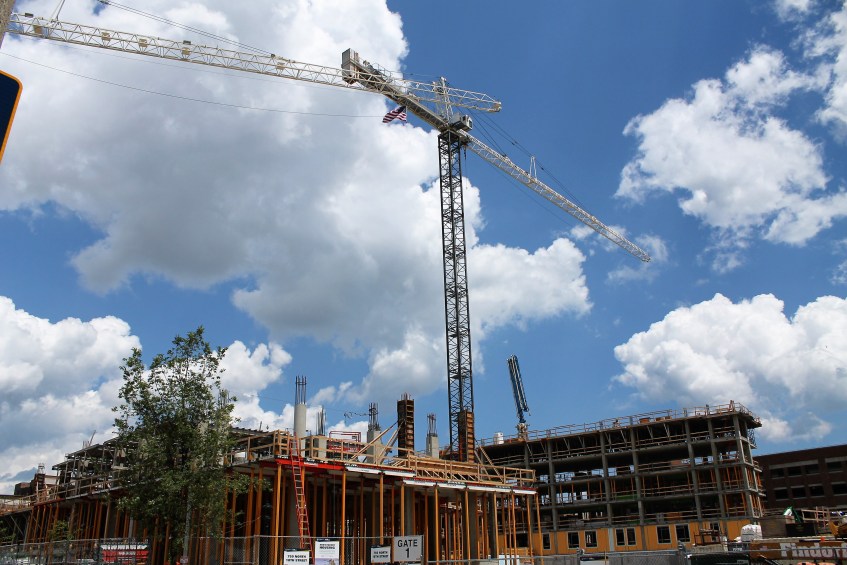 Robert A. Wild, S.J. Commons at Marquette University 5 Published August 3, 2017 at 4272 × 2848 in Wandering Milwaukee: Marquette University puts up two tower cranes