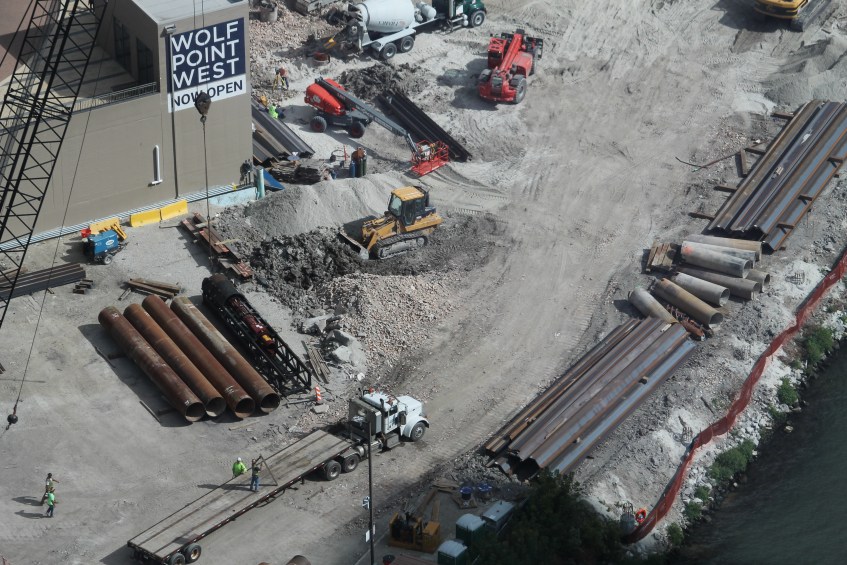 Wolf Point East pile driving 15 Published September 8, 2017 at 4272 × 2848 in With caissons done, Walsh Construction drives piles at Wolf Point East.