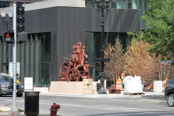 The Haymarket Monument is back home at 165 North Desplaines, where it will greet residents of EMME.