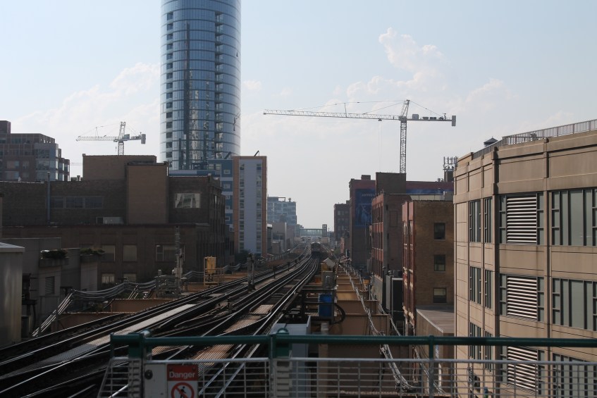 Hoxton Chicago hotel tower crane 16 Published September 25, 2017 at 4272 × 2848 in It’s time to go vertical, as the Hoxton Chicago erects a tower crane The view from the Clinton L platform.