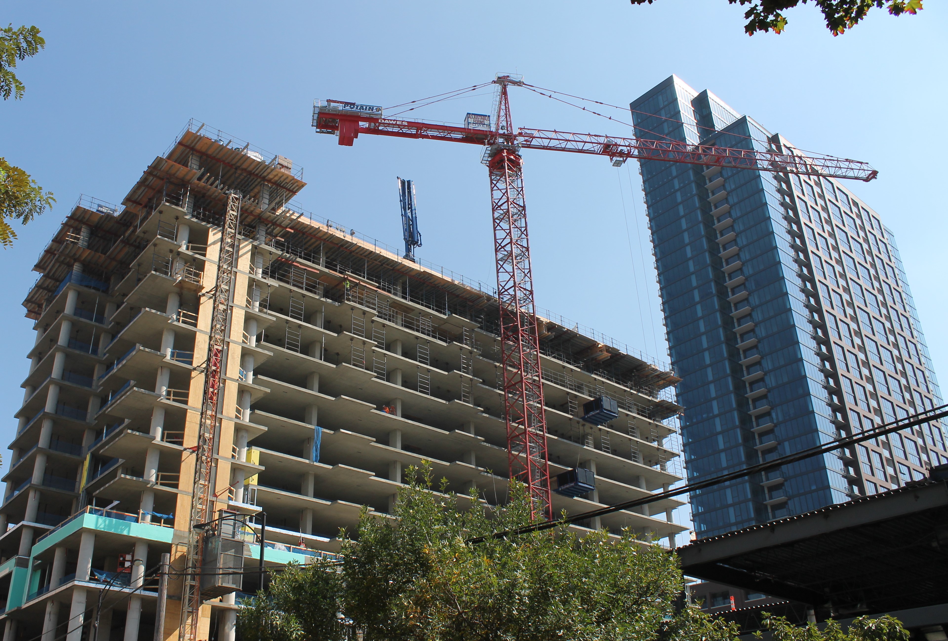 On the right is #33, Power Construction’s tower crane at 900 West, erected on the last two days of September.