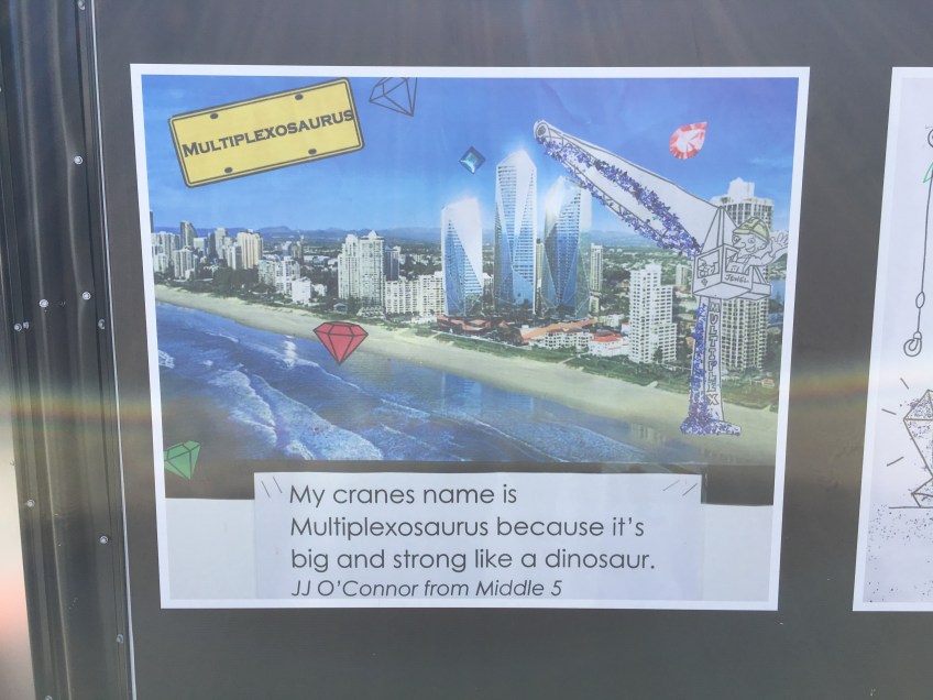 Jewel Gold Coast named cranes 7 Published October 31, 2017 at 4032 × 3024 in Students from the Mudgeeraba Special School named the five tower cranes at Jewel Gold Coast