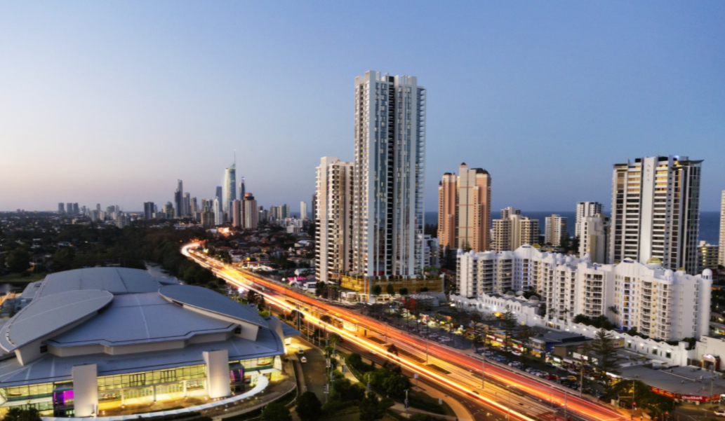Qube Broadbeach 1 Published November 12, 2017 at 1033 × 601 in Qute spelling and all, Qube qontinues qonstruction in Broadbeach, Gold Coast Rendering of Qube Broadbeach.
