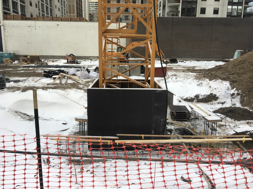 61 East Banks tower crane 2 Published February 8, 2018 at 4032 × 3024 in 61 East Banks puts up Chicago’s newest tower crane