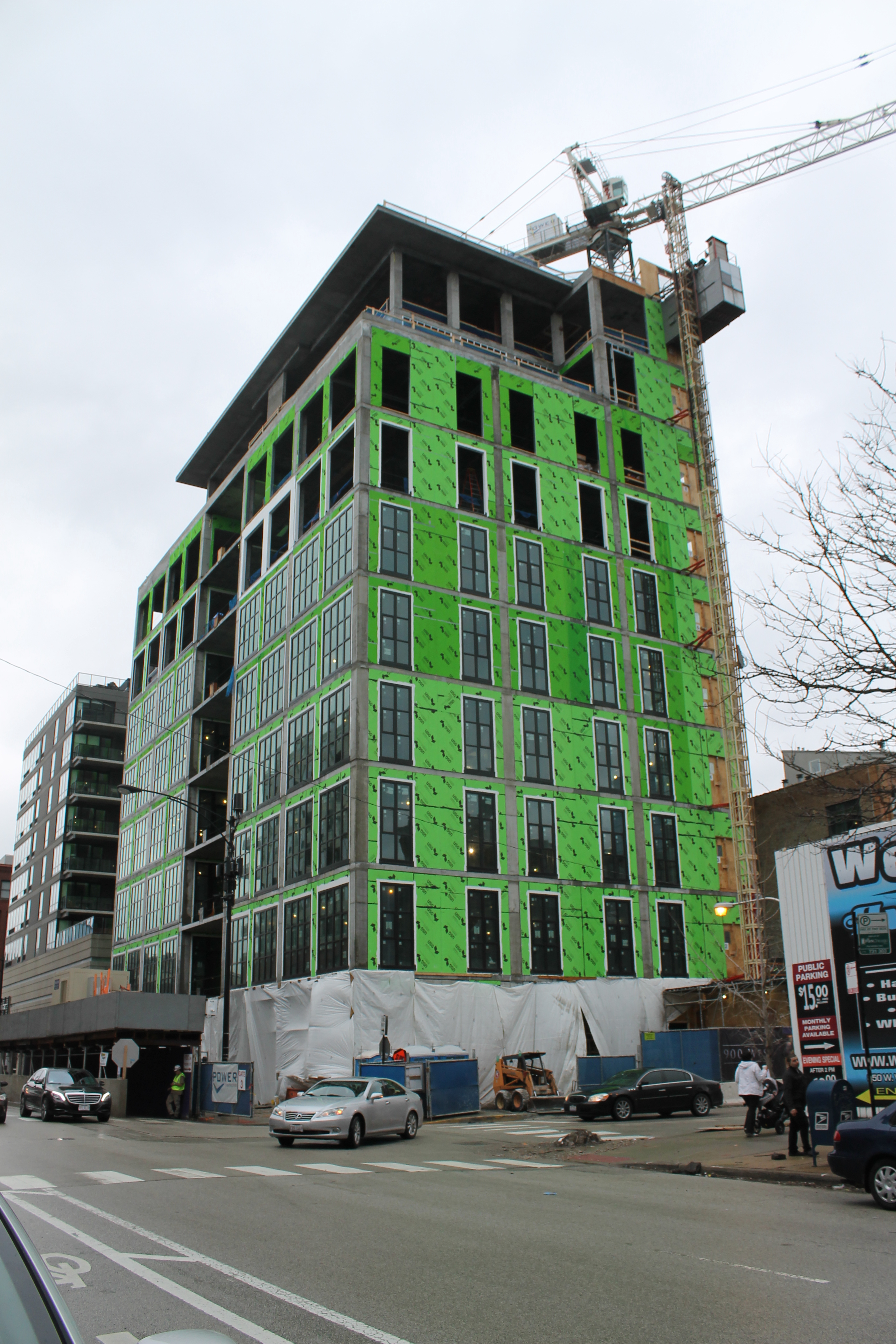 900 West glass work 17 Published February 22, 2018 at 2848 × 4272 in Power Construction brings the pane to (a topped out?) 900 West