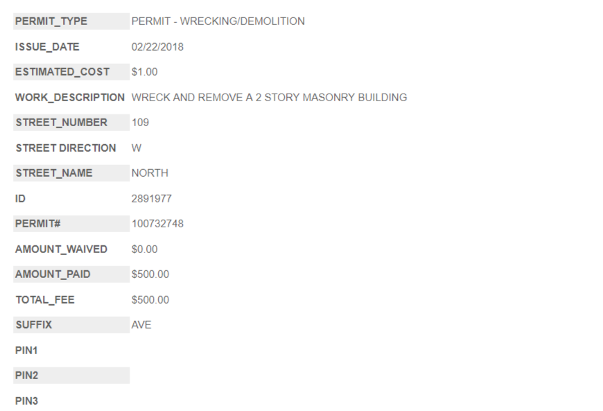 Demolition for Fifteen Fifty on the Park 4 Published February 27, 2018 at 870 × 593 in Fifteen Fifty on the Park begins demolition, but saves the Village Theater facade 109 West North Avenue demo permit.