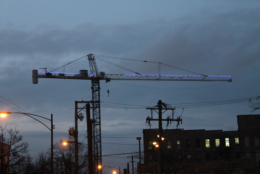 Twelve01West glowing tower crane 10 Published March 7, 2018 at 4272 × 2848 in Twelve01West lights up the West Loop sky