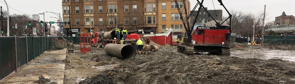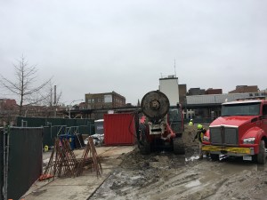 I set out Monday morning to watch caisson work, and got there just in time to watch Revcon their caisson equipment onto flatbeds and haul it away. Time, you see, waits for no one. A return trip to the site Monday afternoon shows an empty site.