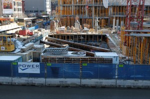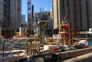 Chicago’s coolest chasm, the Tower C cofferdam at One Chicago Square. Photo courtesy of Mike Conlon at Power Construction.