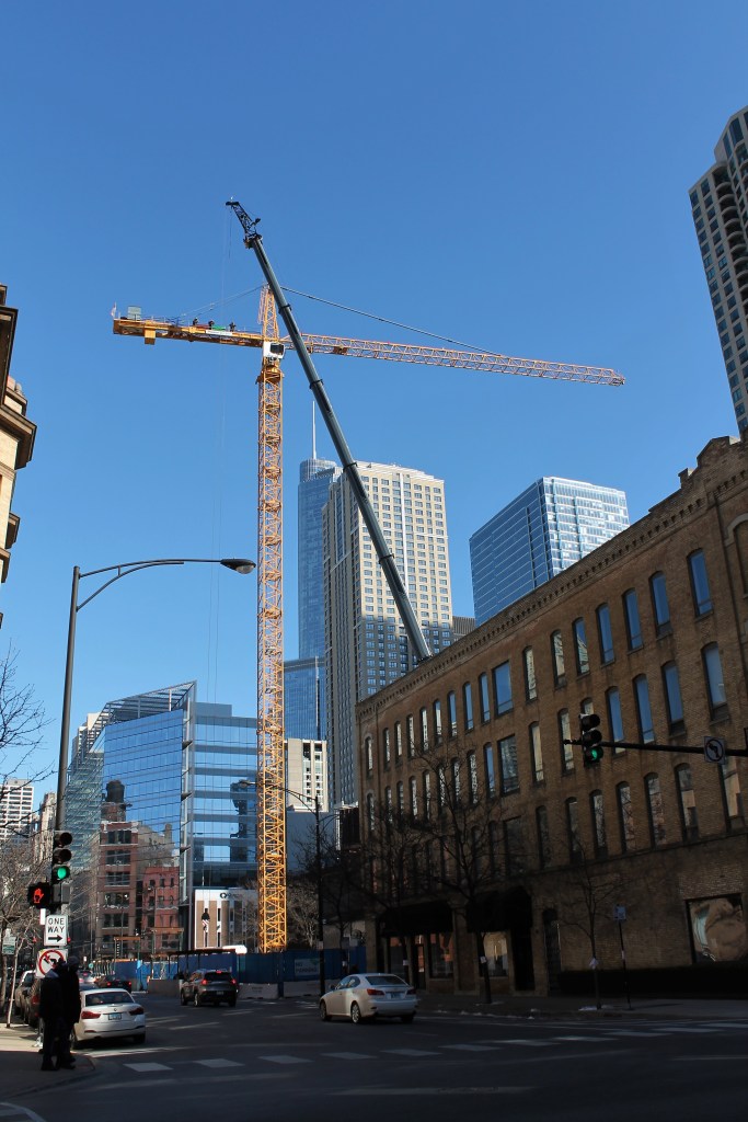 448 North LaSalle Tower Crane Day 47 Published March 2, 2020 at 2707 × 4061 in 448 North LaSalle hangs a tower crane