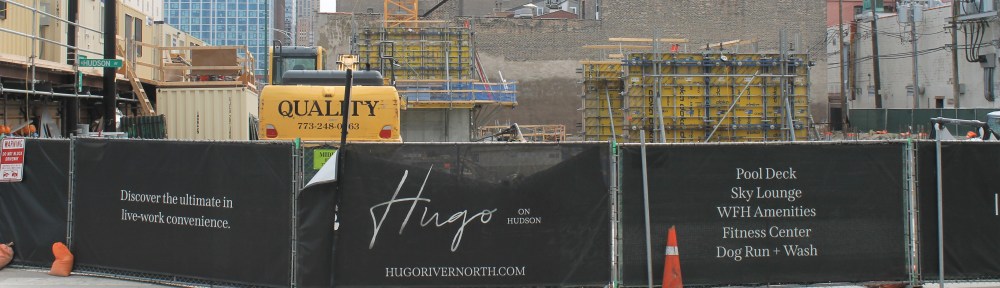 No longer two large excavation sites, HUGO is beginning to sprout like two spring flower beds in the 400-block of West Chicago Avenue. That’s all thanks to developer-slash-general contractor LG Group, whose task it is to bring this two-sided NORR design to life.