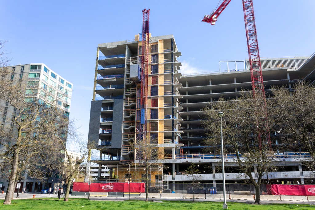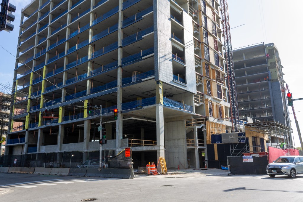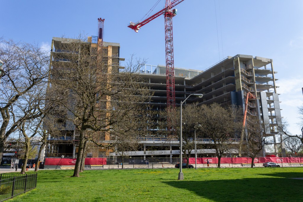 Congrats go out to the development team on topping out the 12-story building last month:
