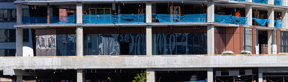 A week late, but here’s a whole mess o’ photos of the first level of glass installation at Cassidy on Canal, taken Wednesday May 10.