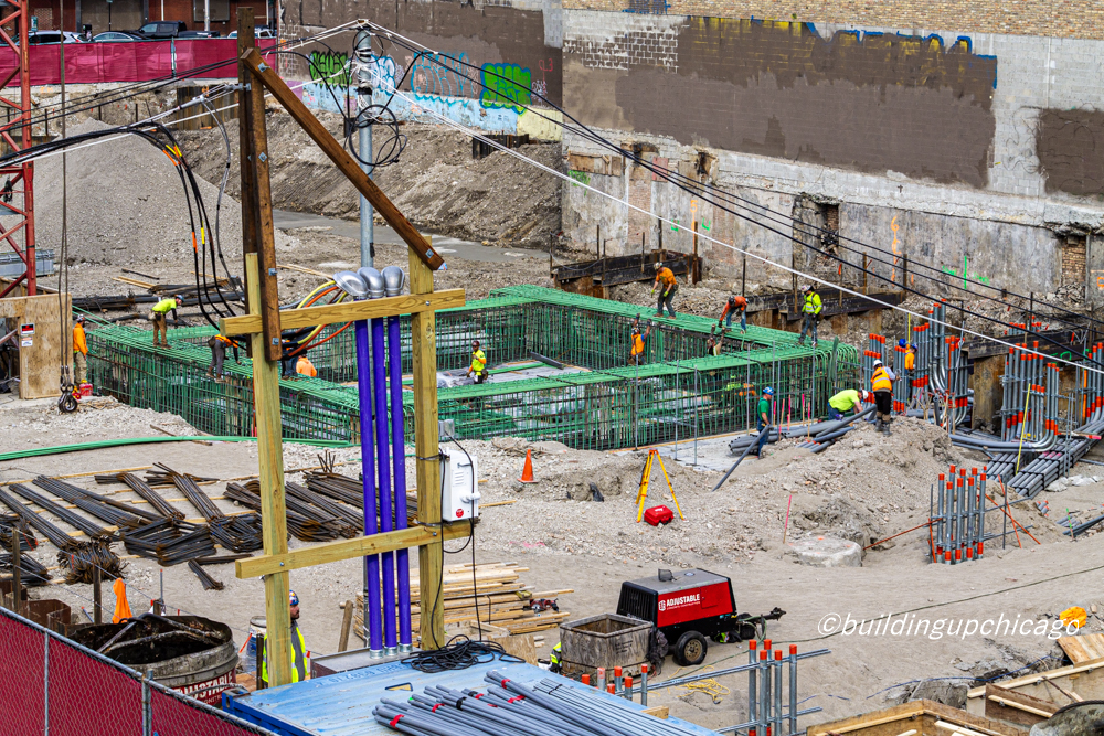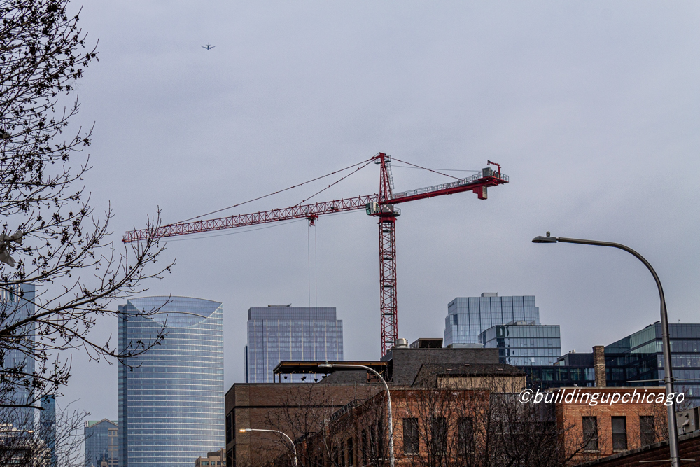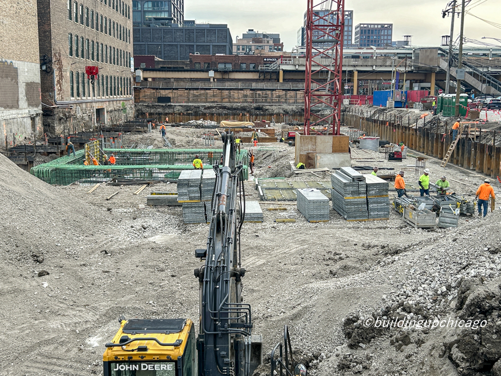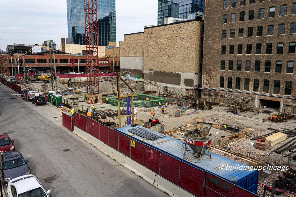 The tower crane is up, and foundations are down — below street level that is — at the West Loop’s 919 West Fulton, an 11-story, 530-square-foot office building from Fulton Street Companies.