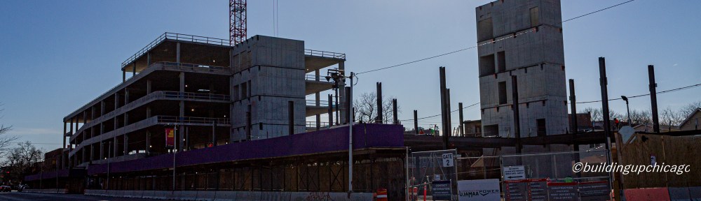 There’s a 237-stall parking garage with a tower crane stabbing through it, and now it’s on to the healthcare portion of Northwestern Medicine’s new facility at 4822 South Cottage Grove in the Grand Boulevard Community Area of Chicago.