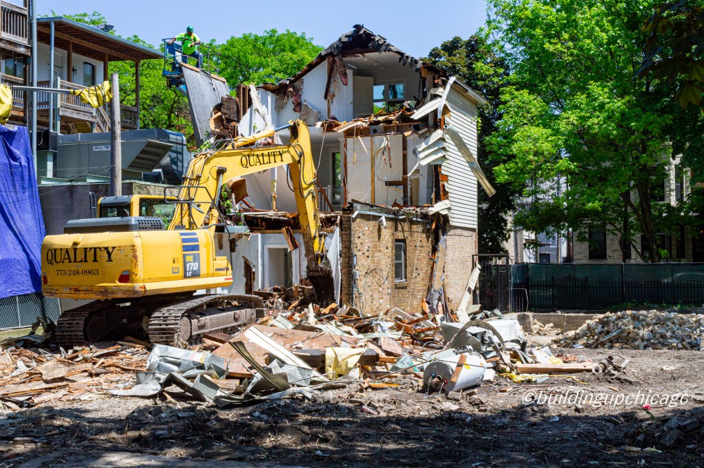 Quality Excavation is doing the dirty work, while Power Construction’s Luxury Residence Group is the overall general contractor for the new building (mansion?) to come. Dennis Rodkin at Crain’s Chicago addressed these properties last year; whether the plan is the same, I can’t say. No new permit has been issued for these lots yet.