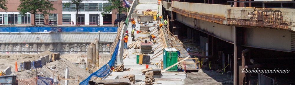 As you can see in the photos, the off-ramp from Lake Shore Drive that got chopped off looks like an off-ramp again, and the concrete core outshines the old Chicago Spire Hole. As it should; that thing had worn out its welcome. Like, 15 years ago.