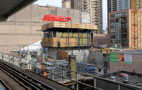The way I figure it, as long as there are forms atop Eleven40 in the South Loop, I’ll still have a tower crane to see in the back yard. Once those are all down though, we can expect crane removal to happen post haste, as the apartment tower from CA Ventures and Keith Giles continues toward completion at 1136 South Wabash Avenue. And only the east elevation still has forms at all, so we’re getting down to crunch time.