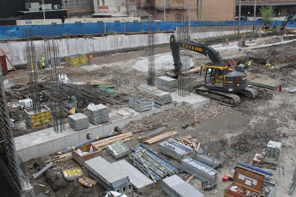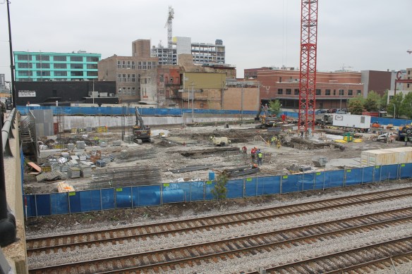 Case Foundation is on site at this very moment–go look, I can wait–drilling caissons into the earth. Power Construction, another ridiculously-busy entity right now in the West Loop, is the general contractor. Their task is to have 333 North Green open for business in 2019.