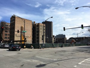Across Sheridan Road on the northeast corner of the intersection, Vermilion Development received a building permit on Monday to construct a 100-unit project where a gas station once stood. A design by Hirsch Associates Architects (Centrum Hubbard, 412 North Wells, Centrum Bucktown), and assigned to an address of 734 West Sheridan, this one will be 10 stories high. Arco/Murray, the GC on Hirsch’s Centrum Bucktown job, will be the general contractor here as well.