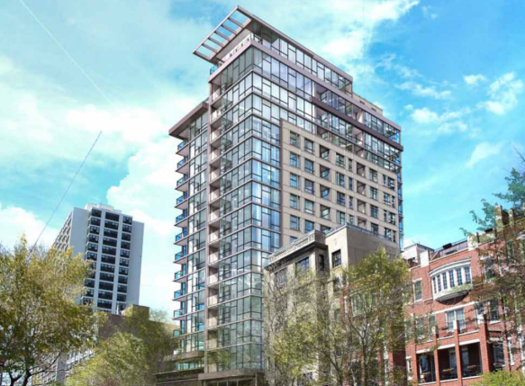 - Rendering of 450 West Belmont from the 44th Ward presentation.