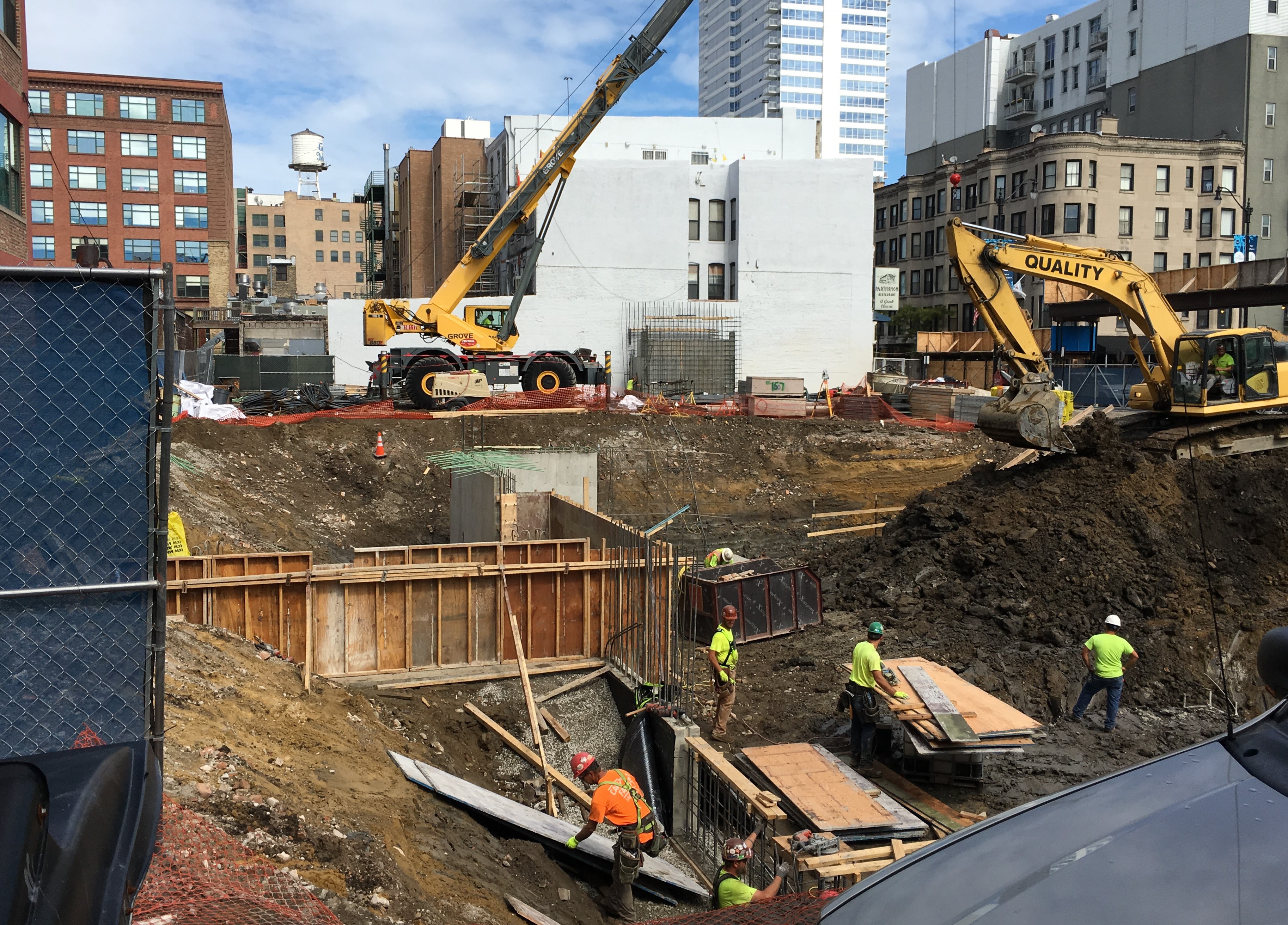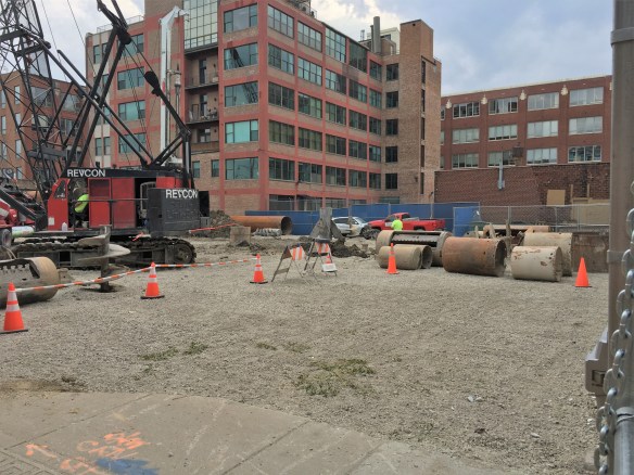 The Van Buren began with a foundation permit back in April, and has since completed caisson work, done a major amount of foundation digging, and planted a tower crane stub. When complete late in 2018, The Van Buren will deliver 148 rental apartments to the neighborhood.