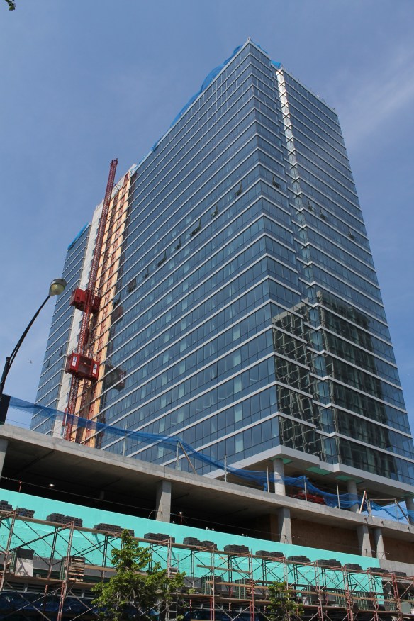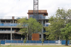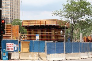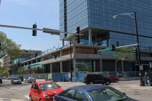 They’re working on the two buildings of RaveLaw for Harlem Irving Companies that will ultimately deliver about 170 luxury apartments, wrapped around the newly built Chase Bank, and right next door to the Ravenswood Metra station.