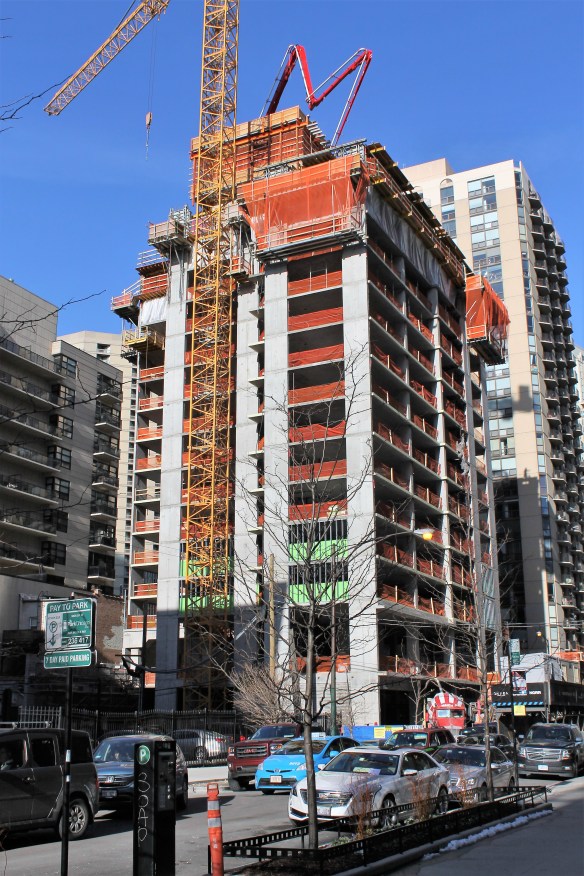 Home2 Suites by Hilton Chicago River North opened at 110 West Huron Street in February 2019. The 17-story hotel boasts 206 rooms in the River North neighborhood. It is the only job this blog has covered in Chicago by general contractor M.A. Mortenson. It was designed by the Chicago architecture firm NORR, and developed by Akara Partners.