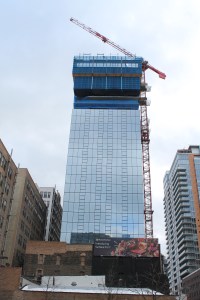 As you can see in the photos, curtain wall progress is inching toward the top of the 30-story Imprint. A Spring 2020 opening is planned, though not all units will be available for immediate occupancy in the spring. Click on the Imprint link and you’ll see what’s gonna be ready when.