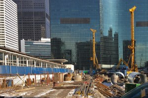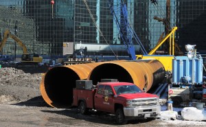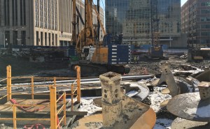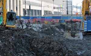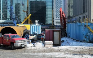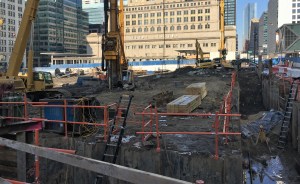 Caisson work is ongoing at Union Station Tower, and it’s still pretty darn tough to get a good look anywhere but along Clinton Street. Sometimes you have to be satisfied with sticking your phone up to the gaps in the fence and snapping away.