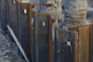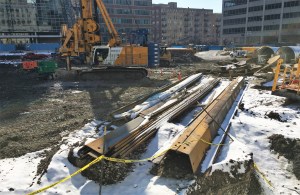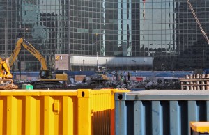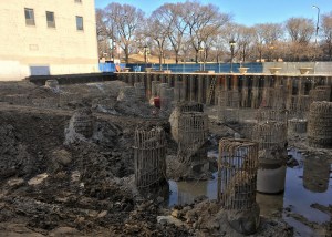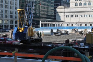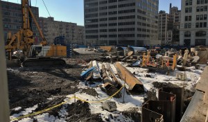 Caisson work is complete at 1000M in the South Loop. Now, foundation work continues as piles are driven and earth is moved. In fact, the pile driving might be done; I didn’t notice the Keller rig I saw earlier this month still on site Sunday with which to pound them into the ground.