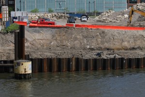 The Cooper is topped out, glassed up, and having major interior work done. And while it gets ready for residents, site work is being done on the ground around it, so when folks start moving in, they’ll have more than just a dirt lot surrounding them. In April, a permit was issued allowing for “NEW CONCRETE RETAINING WALLS, ELEVATED WOOD WALKWAY ON WOOD PILES, DRINKING FOUNTAINS, WATER FEATURE, PLAYGROUND EQUIPMENT, 4FT HIGH METAL FENCE, GUARDRAILS & LANDSCAPING.” (The city always uses CAPS for permits. Sorry.)