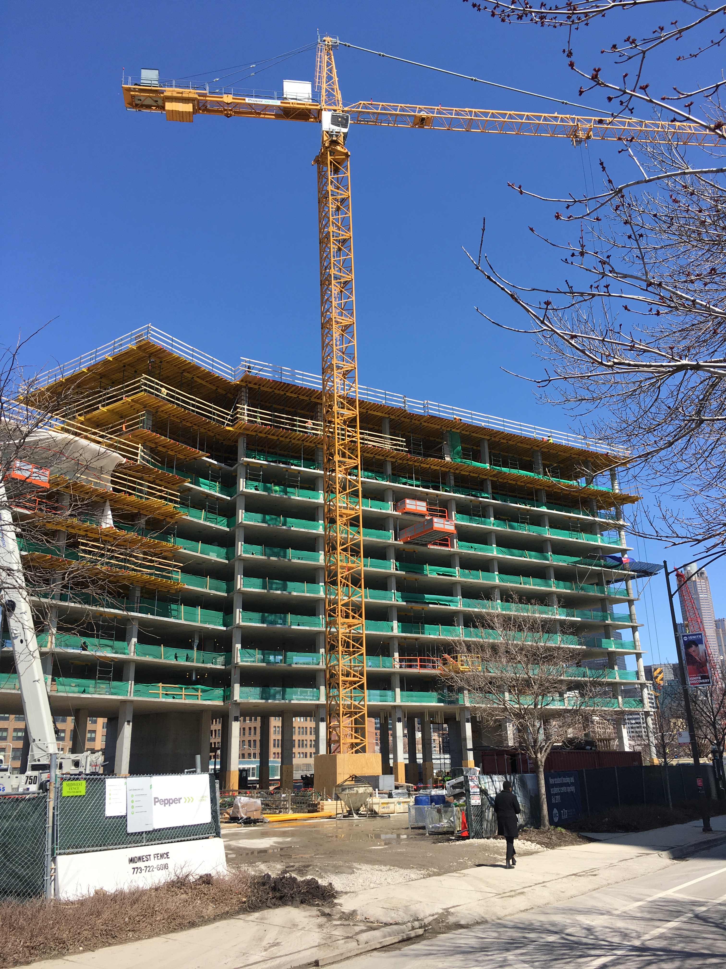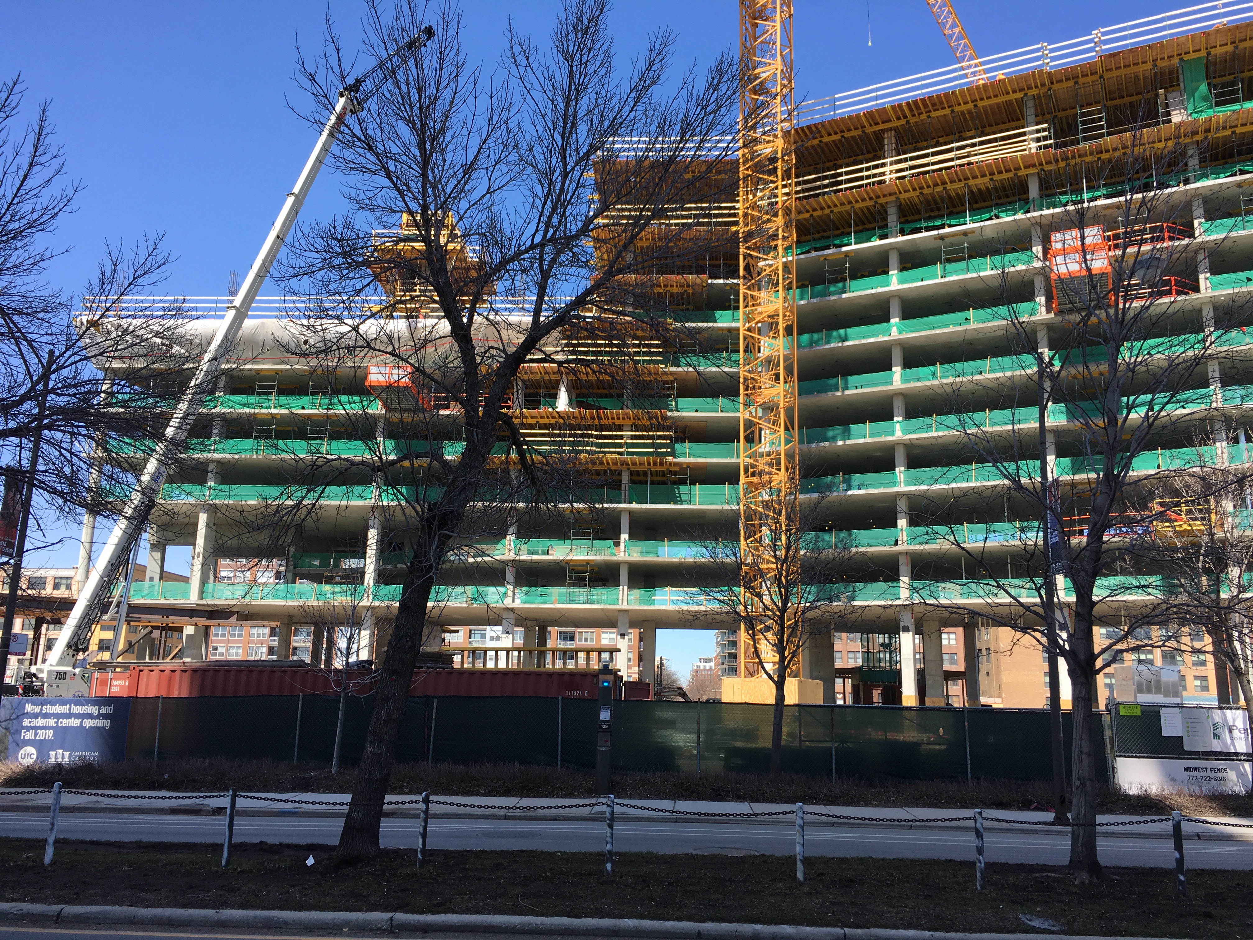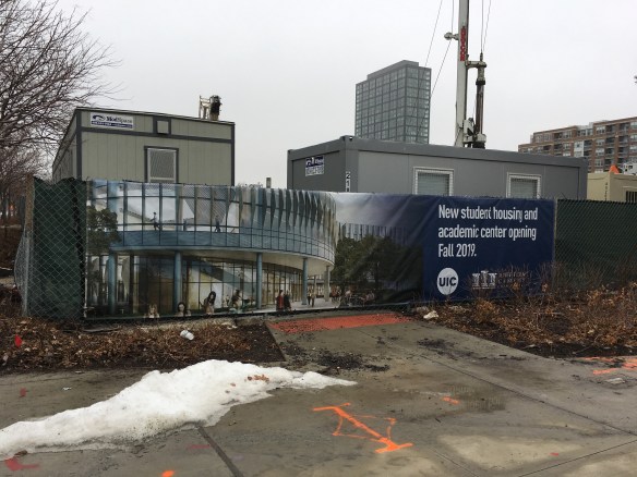 It may also come in handy for Chicago’s tower crane counters. Since this is UIC’s project, it’s under the authority of the State of Illinois, not the City of Chicago. So permits won’t show up on the City Building Permits site I check every Tuesday thru Saturday once the coffee has kicked in. But I’m not gonna let this one get by me, like the UI Health tower crane did. And like the Harrison Hall crane would have if it hadn’t been bright yellow and right up against the Eisenhower Expressway. I have questions out all over town asking if this project will require a tower crane. Answers soon, I hope.